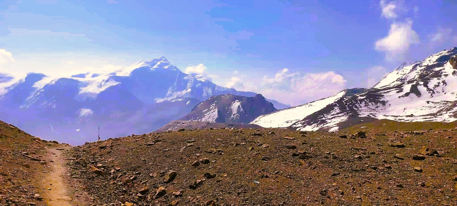 Tilicho Lake (4,920m), is considered the highest glacial lake in the world. Nestled beneath the dramatic cliffs of Tilicho Peak (7,134m), the lake is a shimmering expanse of crystal-clear water surrounded by ice and silence. More than a natural wonder, Tilicho holds deep spiritual significance, it’s mentioned in the Hindu epic Ramayana, and during the full moon in August, Hindu and Buddhist pilgrims’ journey here to perform rituals and take purifying dips in its icy waters. After visiting the lake, the trail reconnects with the Annapurna Circuit, leading to Yak Kharka and Thorong Phedi before crossing the formidable Thorong La Pass at 5,416 meters, one of the highest trekking passes on Earth. Crossing it is a rite of passage, offering panoramic views of Thorong Peak (6144 meters), Yakwakang Peak (6482 meters), and other snow-capped mountains on the Himalayan horizon.