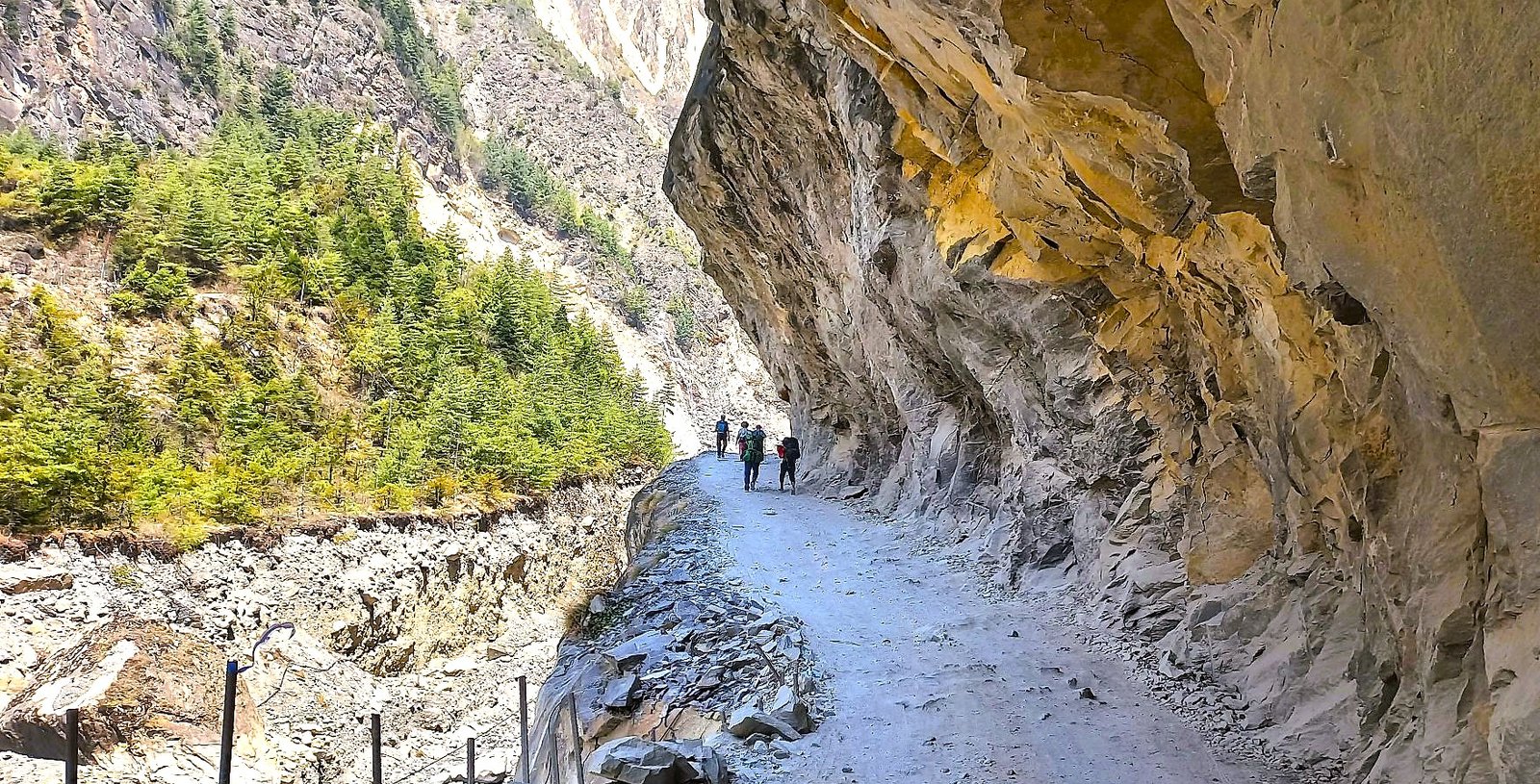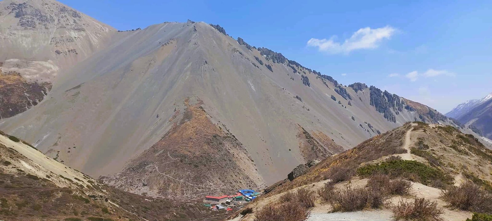 Today’s descent winds through dramatic alpine terrain, where steep, narrow trails cling to rocky slopes and the towering face of Tilicho Peak (7,134m) dominates the skyline. As you move through this rugged terrain, the stark beauty of the high Himalayas unfolds, glacial valleys, and jagged ridges. Gradually, the landscape softens, and the trail begins to contour along the mountainside. Below, the Marsyangdi River glints in the distance. The descent leads you gently into Shree Kharka, to rest and reflect. Overnight lodge. Trekking 4–5 hours.