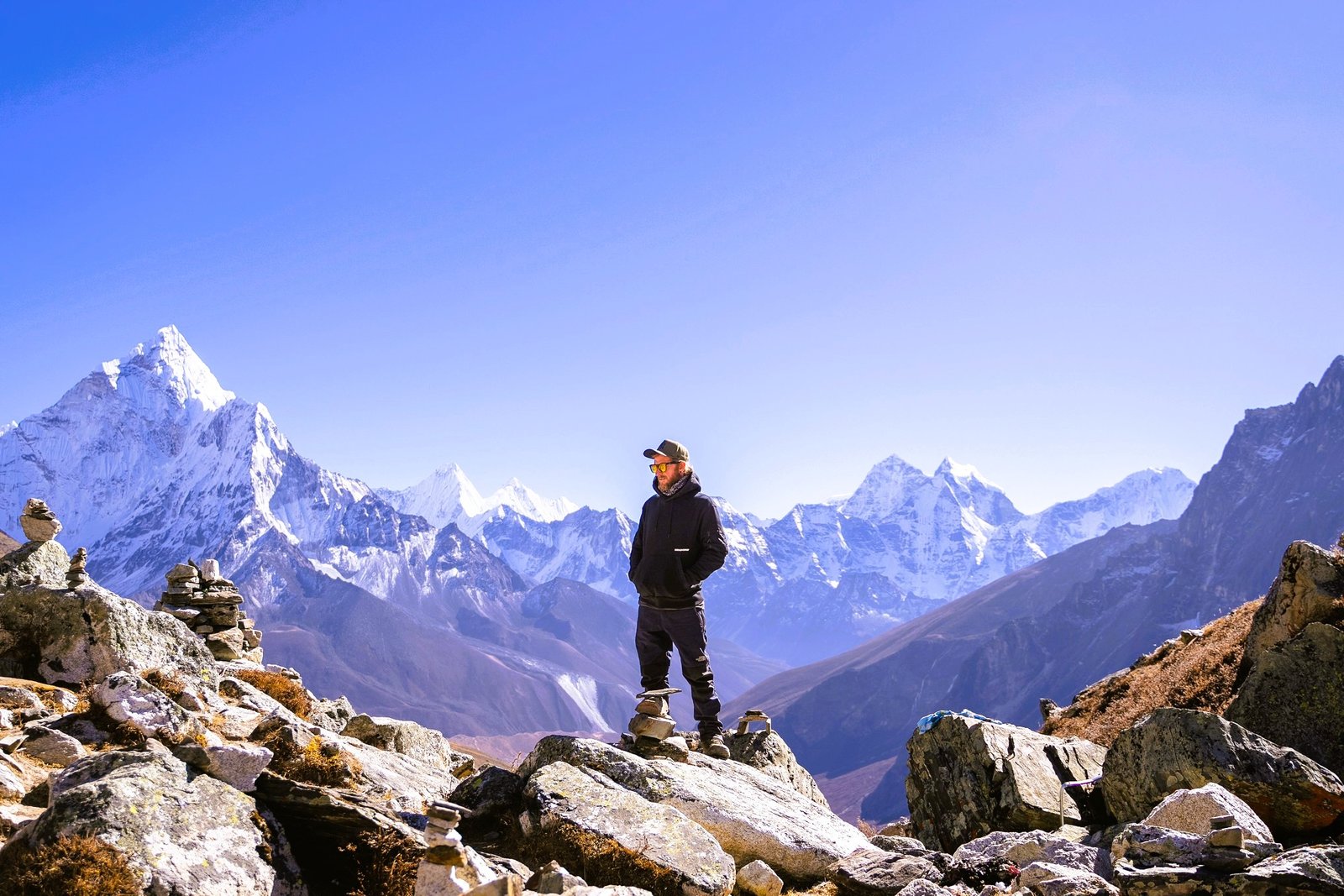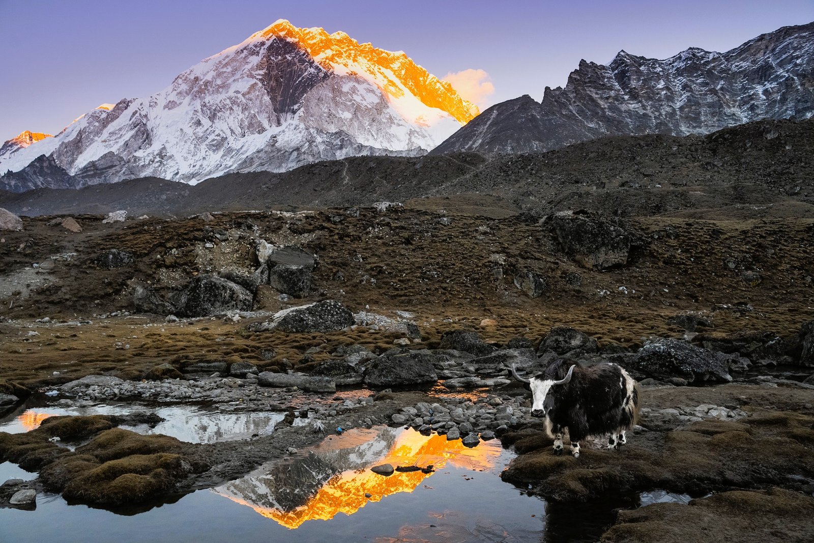 • Gokyo Ri sunrise, an iconic viewpoint over the Gokyo lakes, Ngozumpa Glacier, and a skyline of major 8,000m peaks.