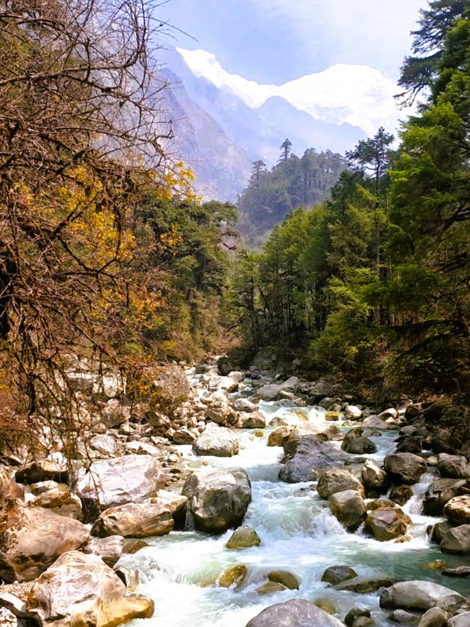 Descend through alpine meadows and forests of pine and rhododendron, retracing your steps with fresh eyes. The Langtang River guides your way, and the descent reveals cascading waterfalls and tranquil river crossings. The crisp mountain air and tranquil woodland setting create a soothing rhythm to the day’s walk. By late afternoon, you’ll arrive at Lama Hotel, a peaceful riverside hamlet tucked beneath the trees. Overnight Tea House. Trekking 7–8 hours.