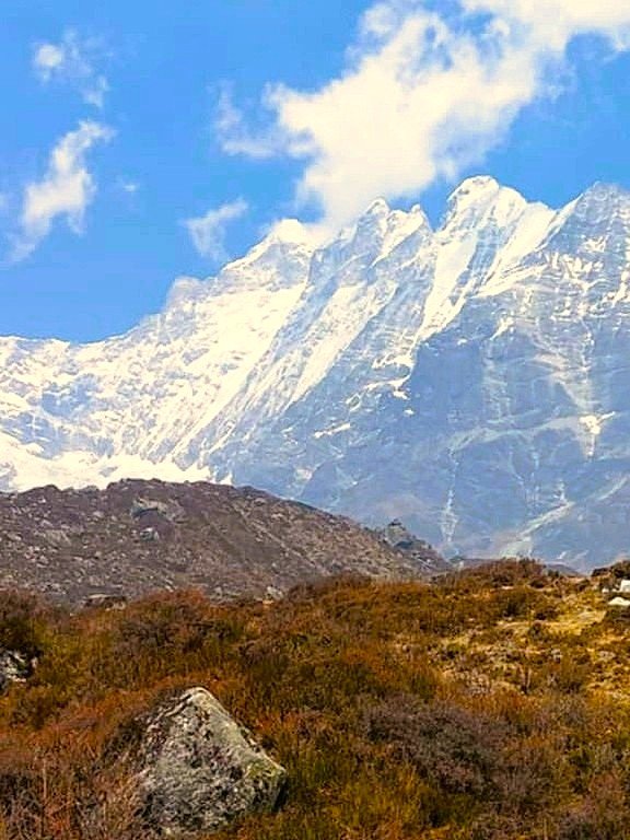 A journey that blends dramatic alpine landscapes, sacred lakes, and vibrant mountain culture. You’ll pass through Tamang and Sherpa communities who will welcome you with warm smiles and Tibetan Buddhist traditions. The trail winds through forests alive with rhododendron, pine, and oak. Towering above it all is Langtang Lirung (7,227m), a majestic sentinel that dominates the skyline alongside Dorje Lakpa and Ganesh Himal.