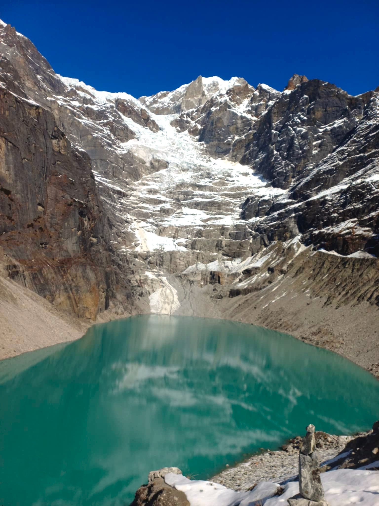 • Walk beneath striking peaks like Kusum Kanguru, Peak 43, and Chamlang, which dominate the skyline long before you reach the glacier.